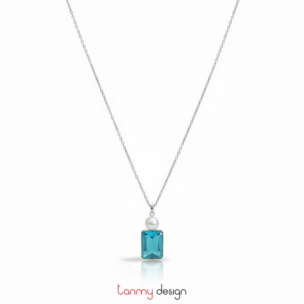 Mặt dây chuyền đá Tourmaline & ngọc trai bọc bạc