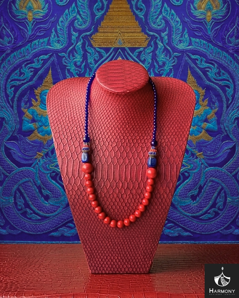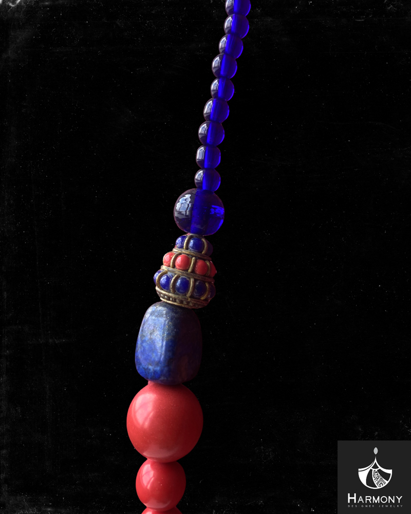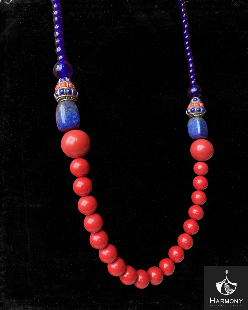 Vòng cổ đá san hô đỏ, lapis, mã não xanh