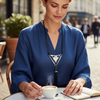 Vòng cổ ngọc trai được thiết kế bởi Rona Bingham, một nhà thiết kế và một nghệ sĩ tài năng. Thiết kế độc đáo của cô đã biến đổi các nét đẹp sinh thái của Nam Thái Bình Dương thành những món đồ trang sức thời trang, sang trọng và lộng lẫy.