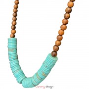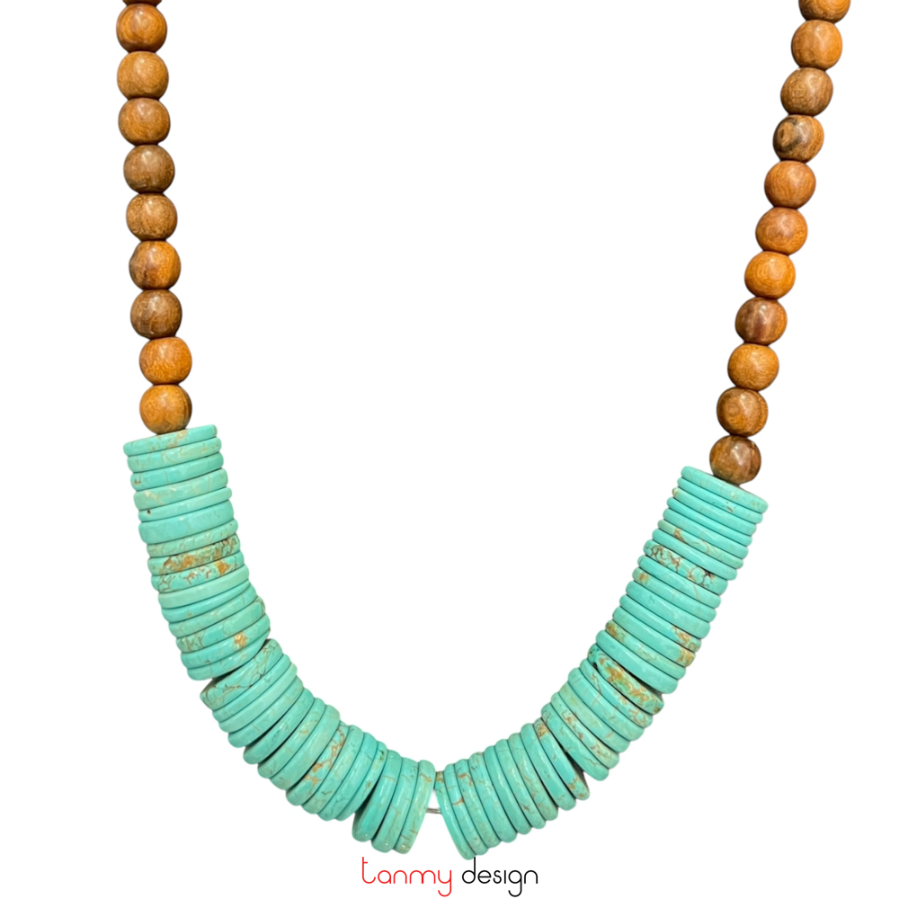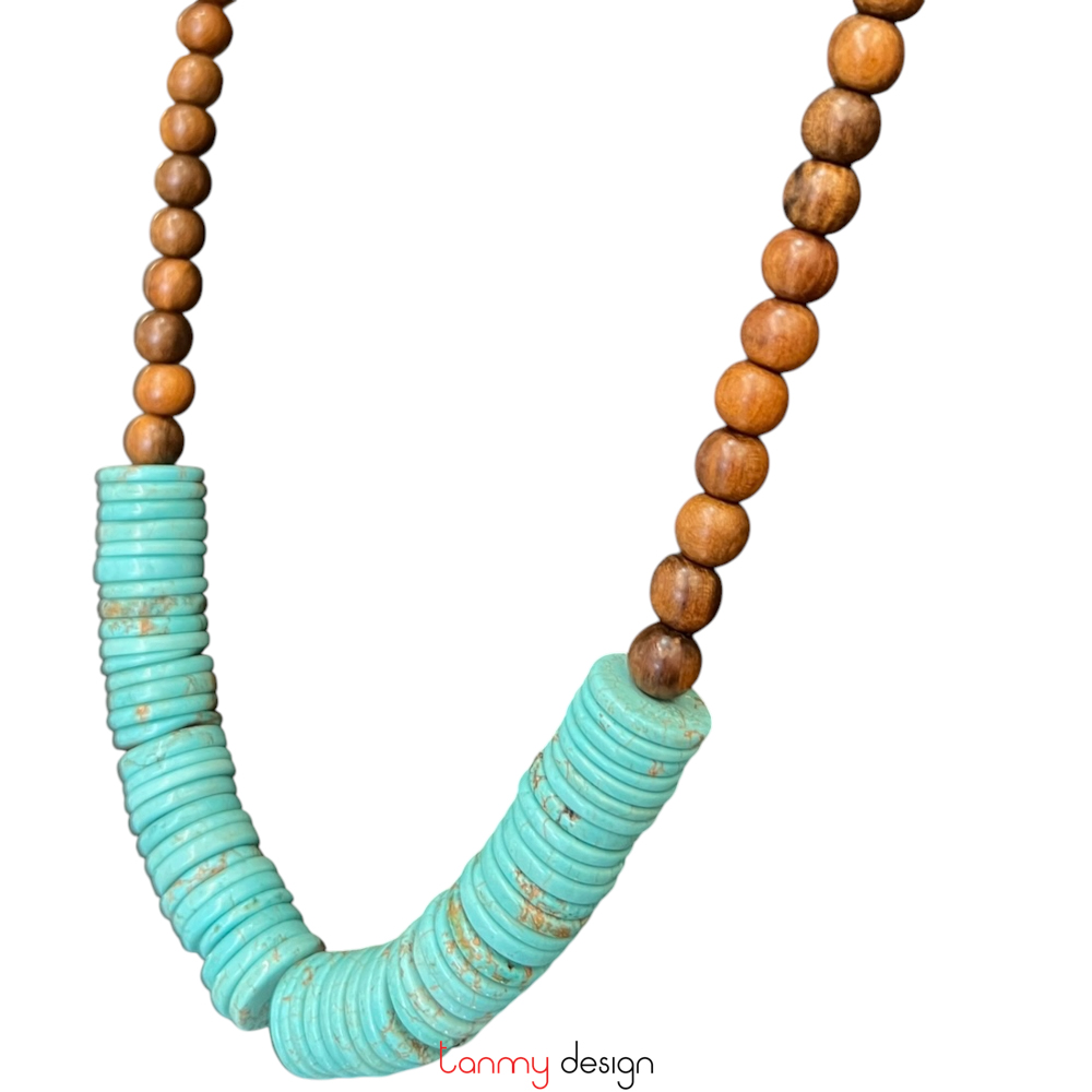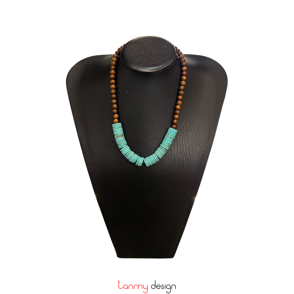 Vòng cổ gỗ muồng và đá Turquoise xanh lam