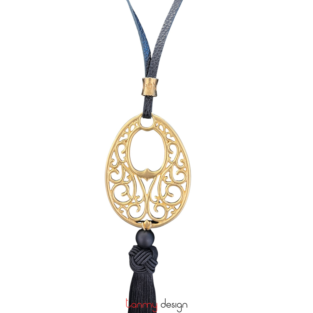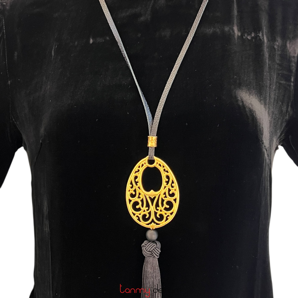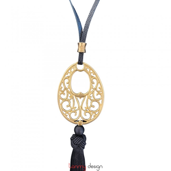 Vòng cổ kim loại mạ vàng, tua rua đen