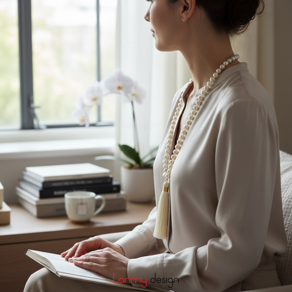 Vòng cổ ngọc trai dài có tua rua
