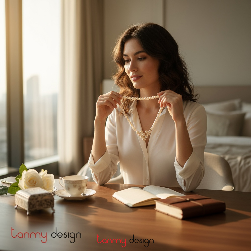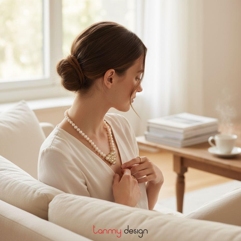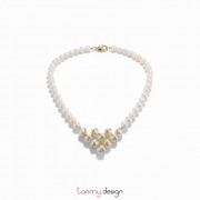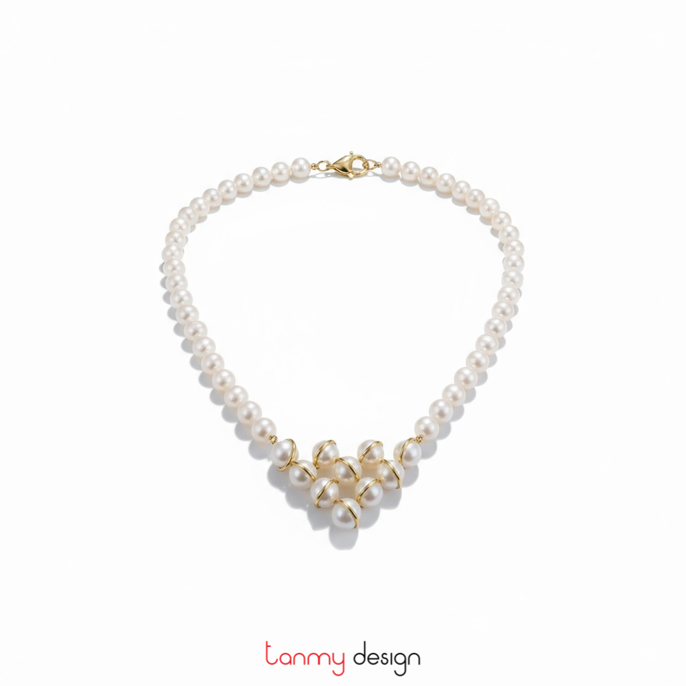 Vòng cổ ngọc trai mặt phối hình tam giác quấn vàng 14k