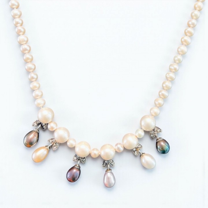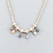 Vòng cổ ngọc trai nhỏ mặt đính 6 viên ngọc trai lá bạc các màu