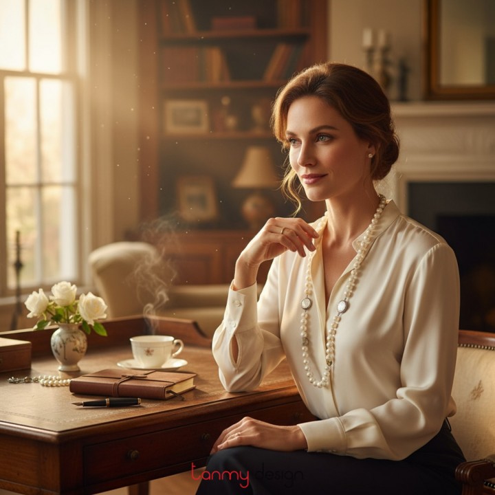 Vòng cổ ngọc trai được thiết kế bởi Rona Bingham, một nhà thiết kế và một nghệ sĩ tài năng. Thiết kế độc đáo của cô đã biến đổi các nét đẹp sinh thái của Nam Thái Bình Dương thành những món đồ trang sức thời trang, sang trọng và lộng lẫy.