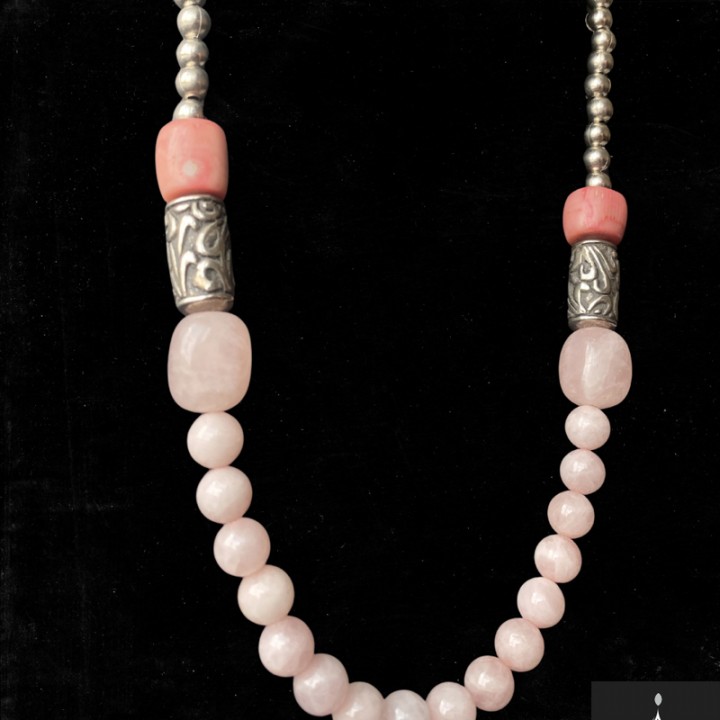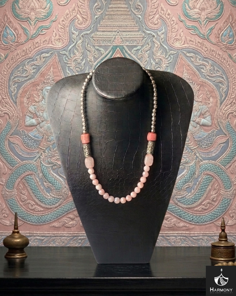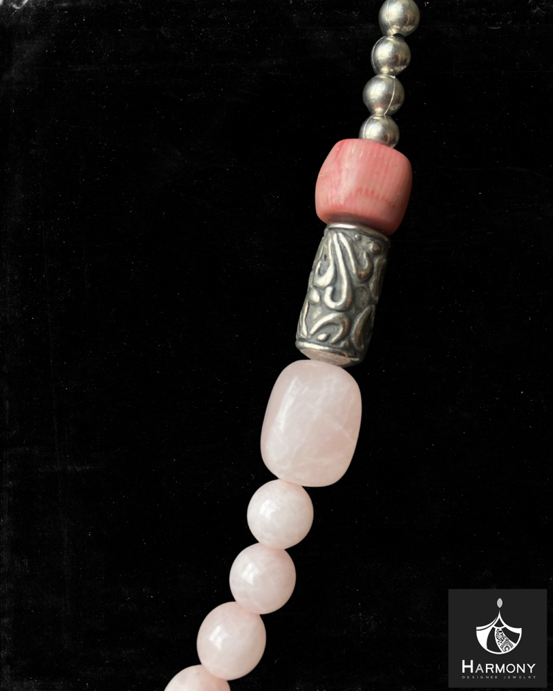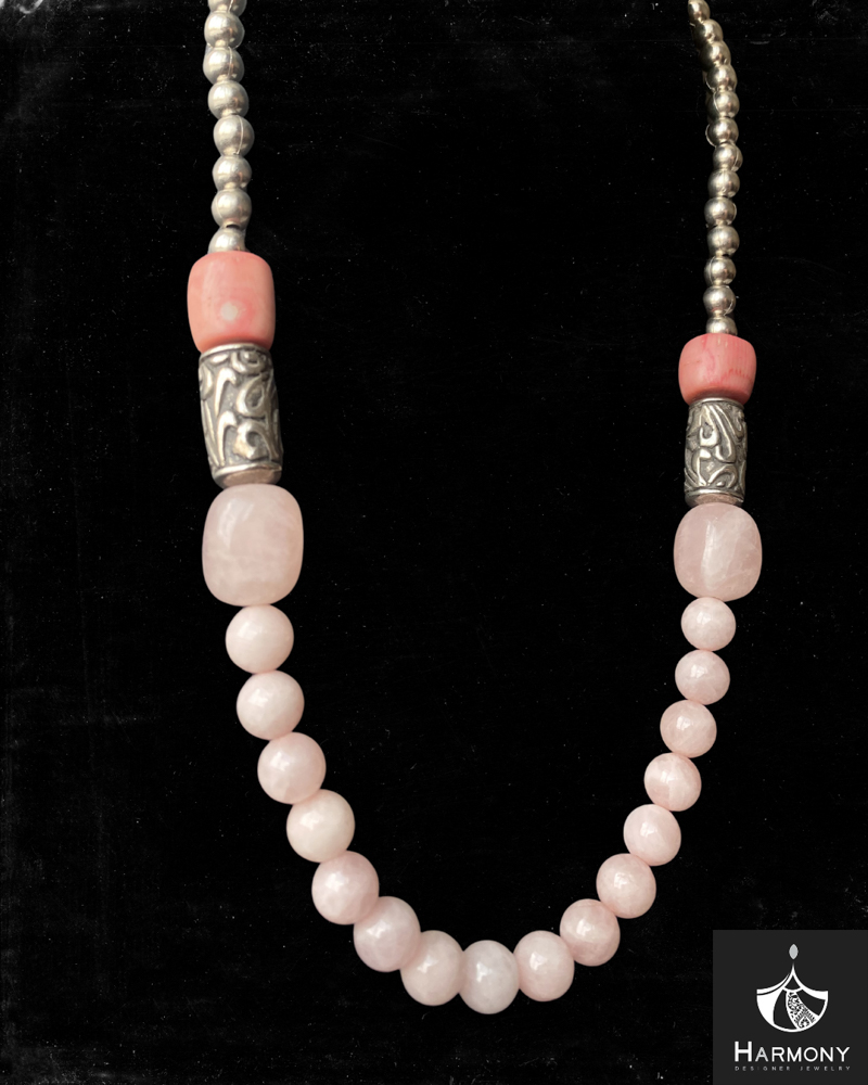 Vòng cổ thạch anh hồng, san hô, hạt resin