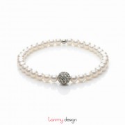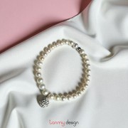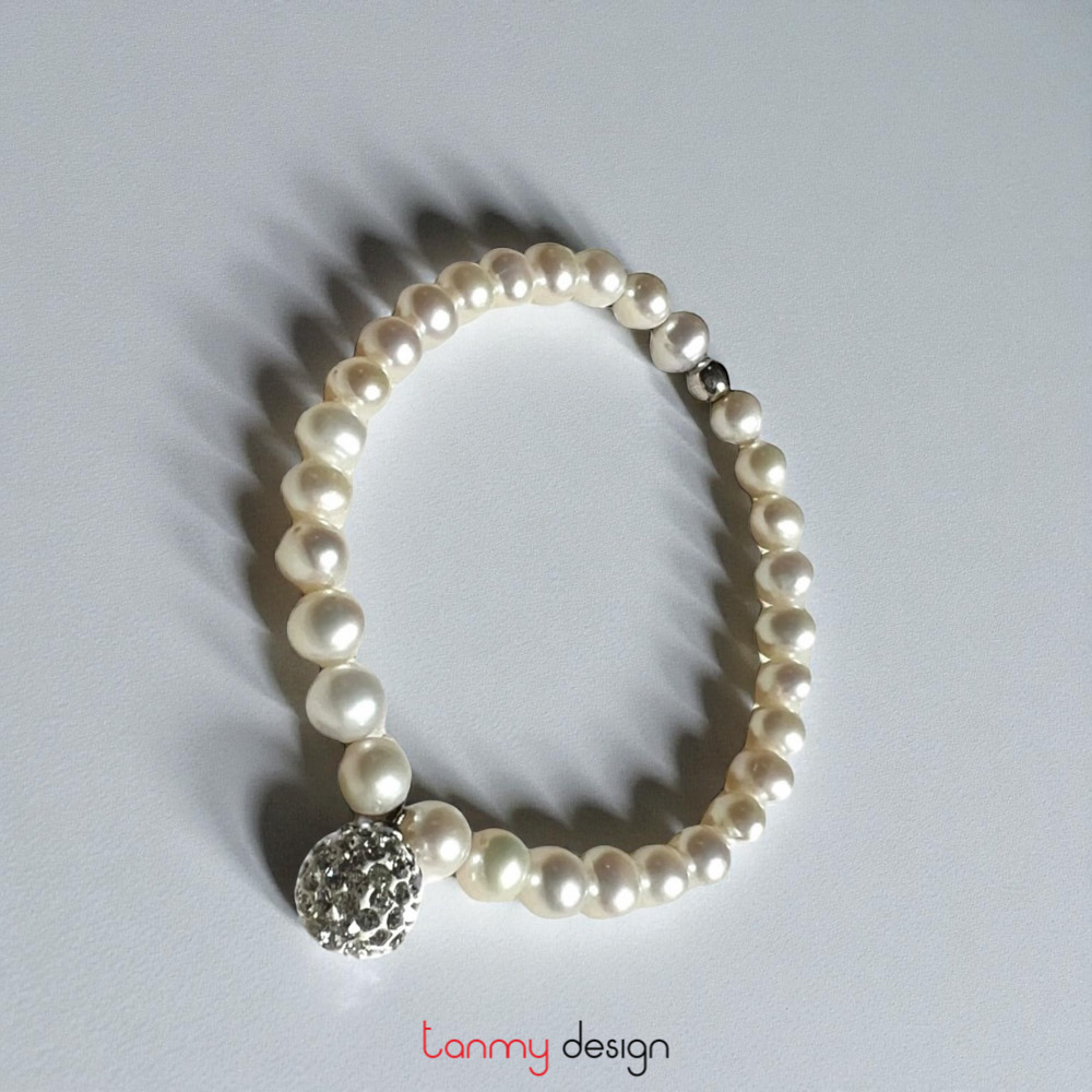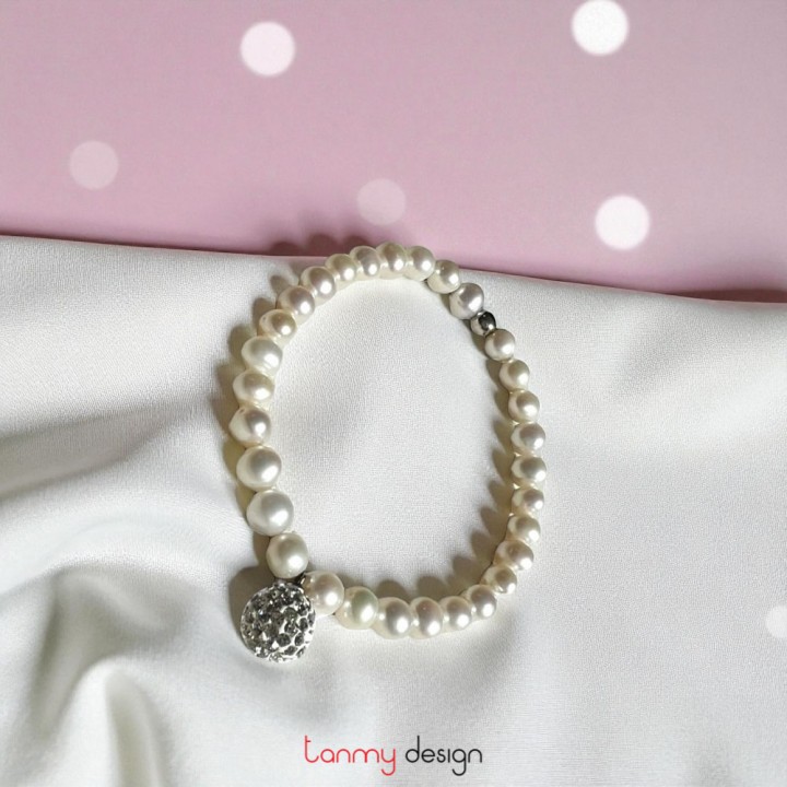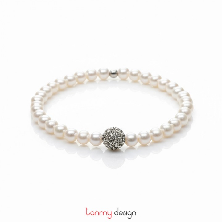 Vòng tay ngọc trai 1 viên bi bạc, charm viên bạc đính đá