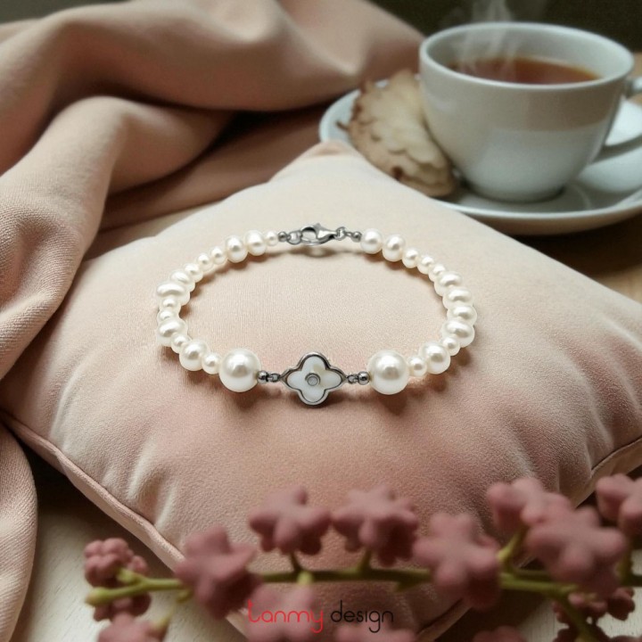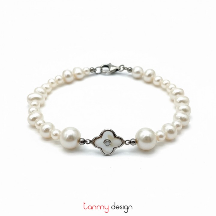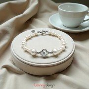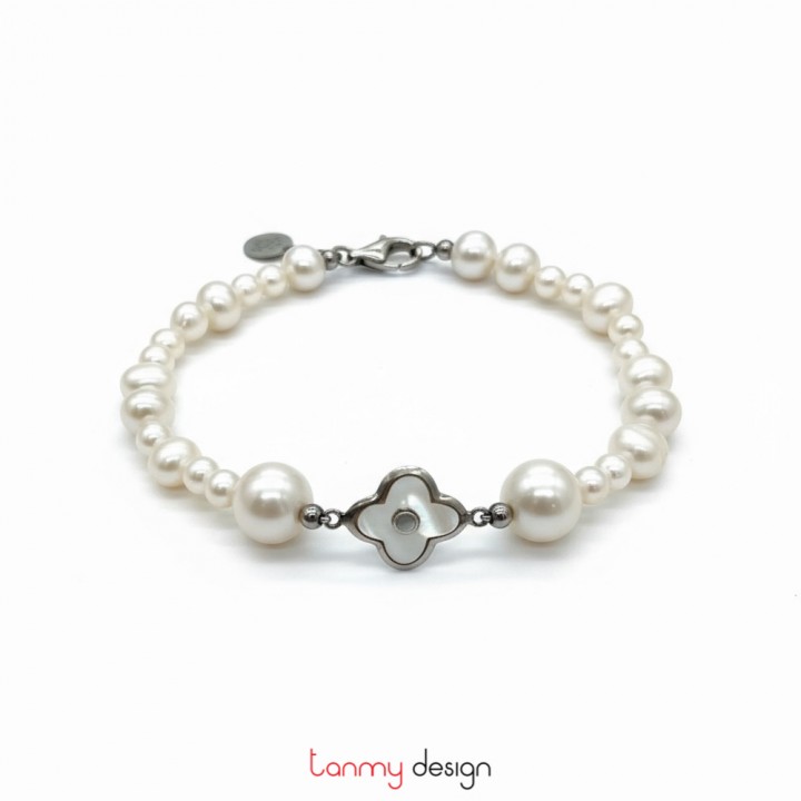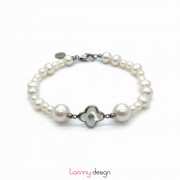 Vòng tay ngọc trai mặt bông hoa vỏ trai bọc bạc