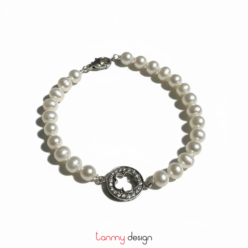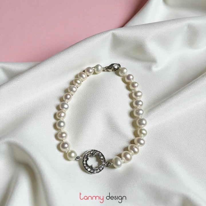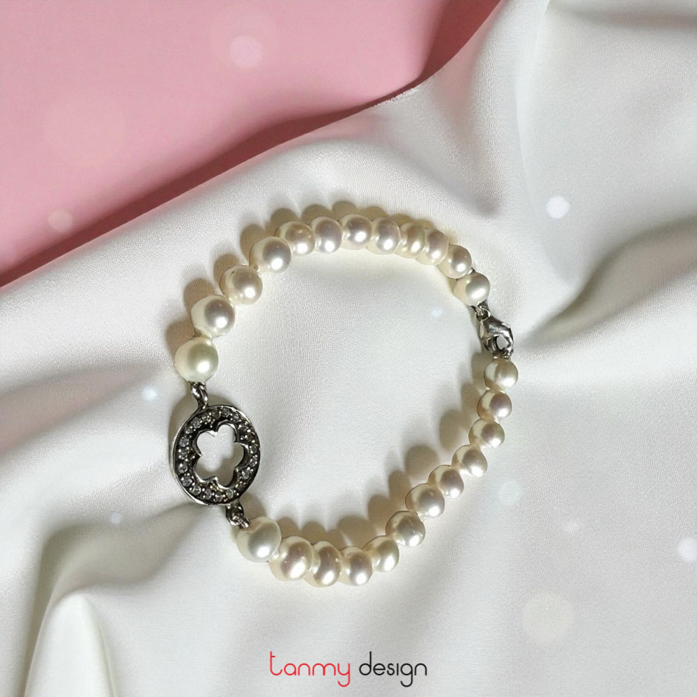 Vòng tay ngọc trai mặt hình hoa đính đá