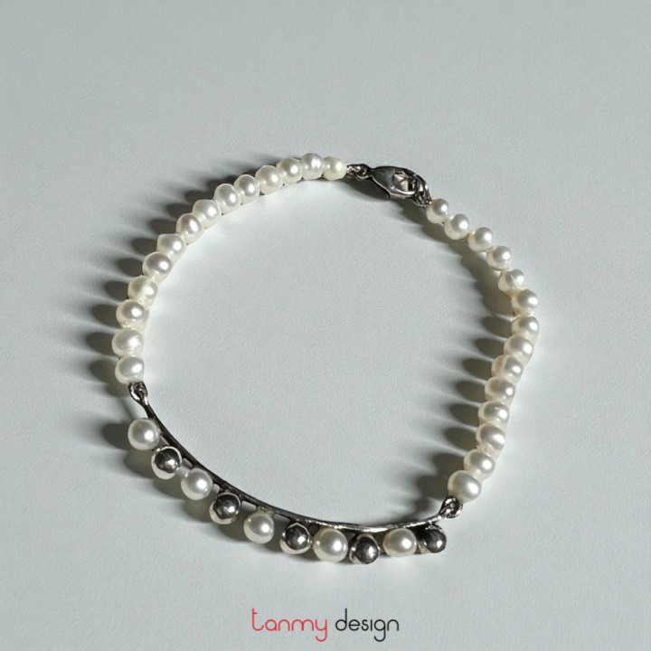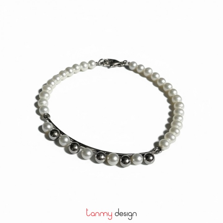 Vòng tay ngọc trai phối thanh bạc phối bi