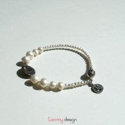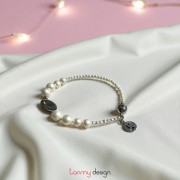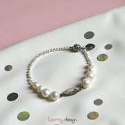 Vòng tay ngọc trai to nhỏ khuy nam châm mặt chữ L bạc