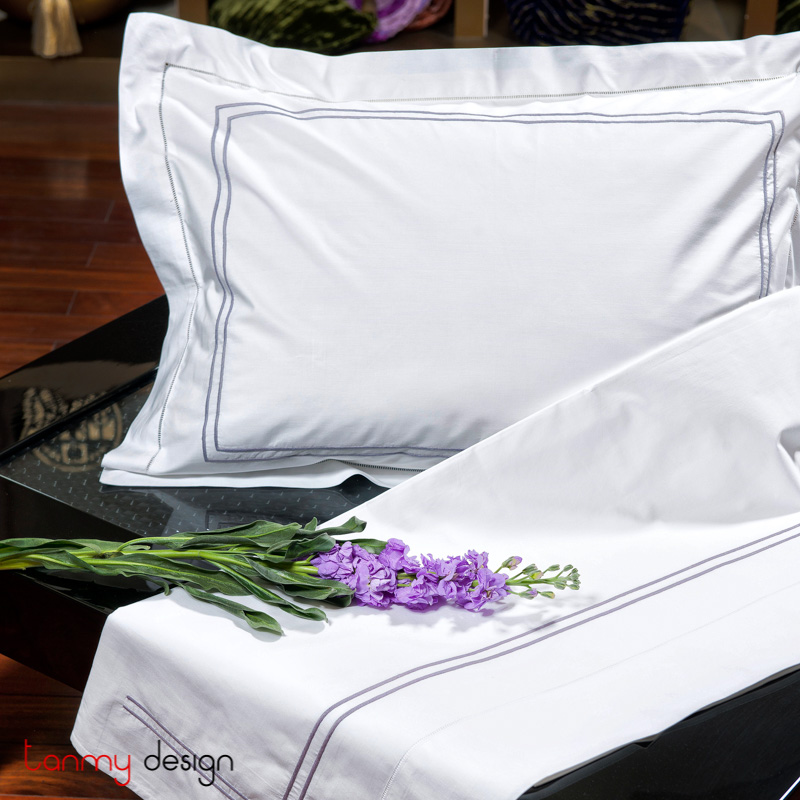 Queen size bed sheet with 2 pillowcases (50x70cm) - 2 line embroidery